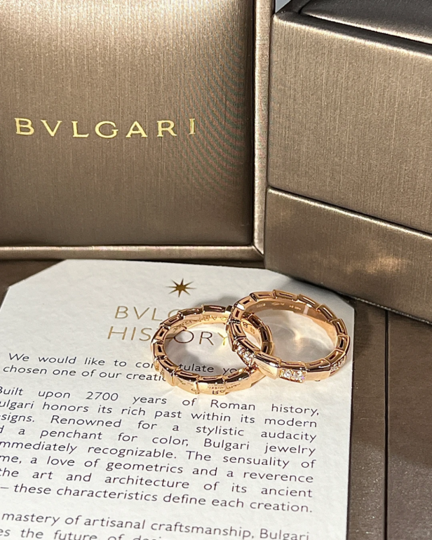 1884年创立于意大利罗马的宝格丽,以鲜明的色彩碰撞与独特的文化融合,跻身世界三大珠宝商之列。品牌标志性的Serpenti系列对戒,以灵蛇图腾象征守护与重生,将东西方文化精髓完美融合,黄金与彩色宝石的大胆搭配尽显奢华张力。每一件作品都兼具艺术价值与佩戴实用性,成为情侣的个性之选。